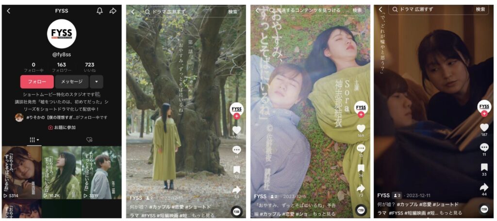 講談社より23年11月発売の短編小説「嘘をついたのは、初めてだった」内にある小説を原作とし、FYSS が運用するTikTokのアカウント投稿用短尺動画を制作。