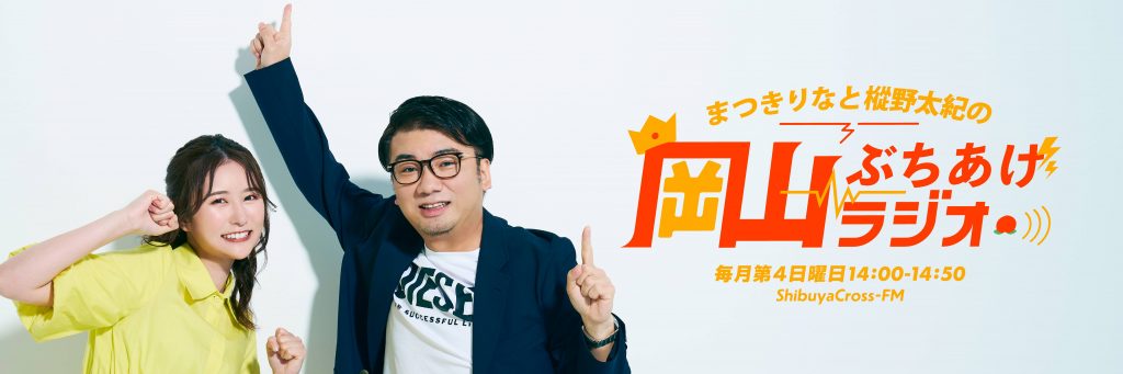 概要:岡山出身の若手タレントまつきりなとベテラン放送作家樅野太紀が岡山を盛り上げたい想いでスタート!岡山にゆかりあるゲストを招き、自由に語り尽くす!目指せ首都岡山!