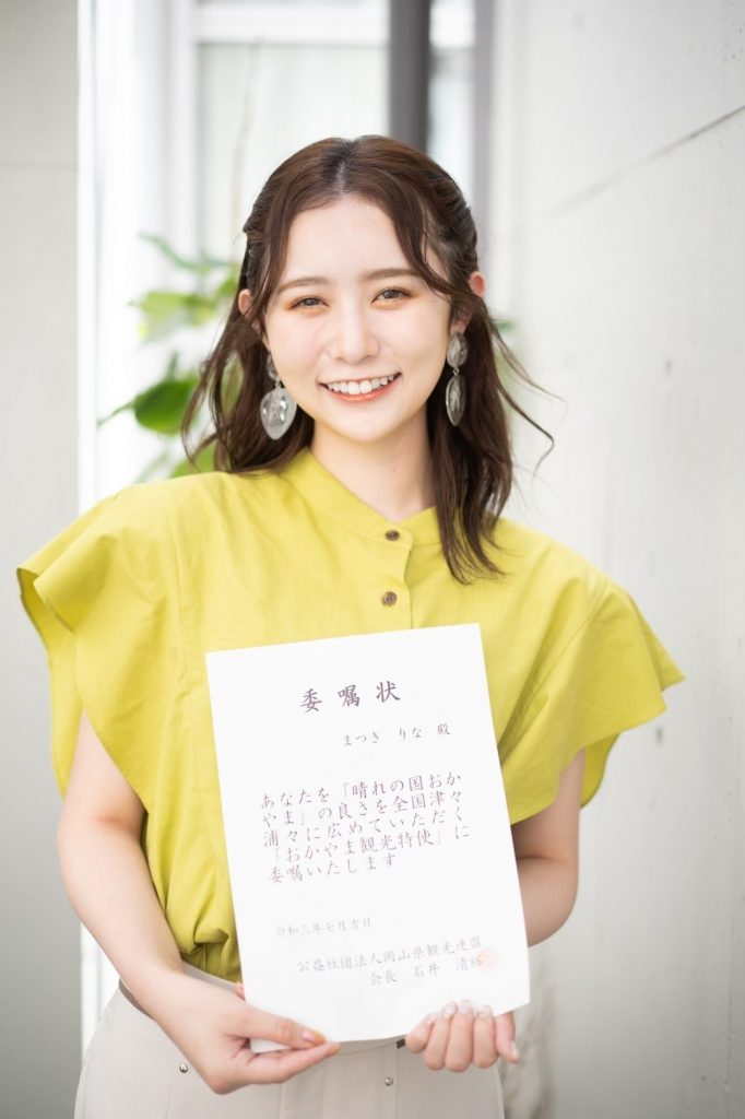 岡山出身タレントまつきりな、「おかやま観光特使」に就任!故郷の魅力を全国へ発信