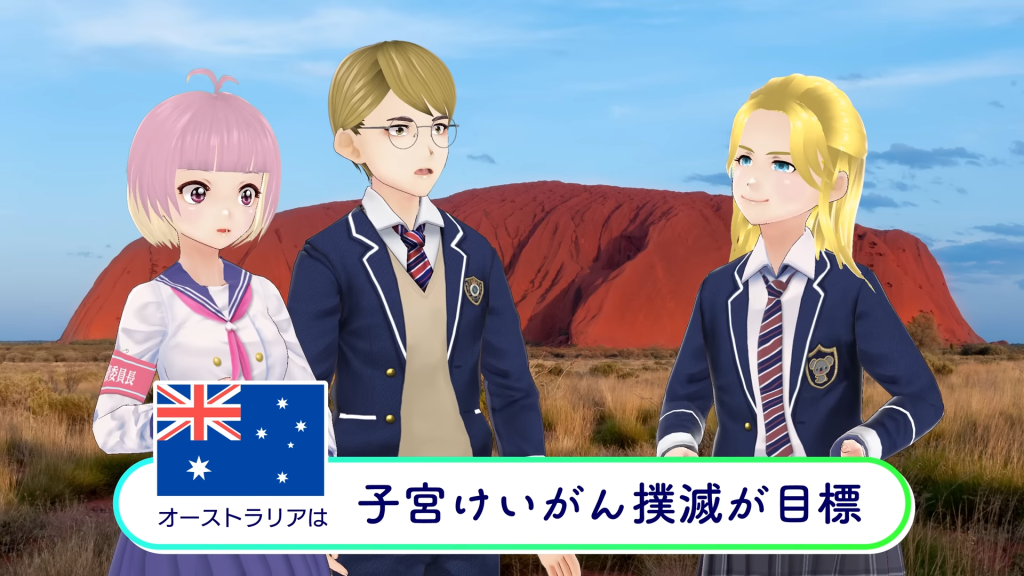 本動画は、子宮けいがんについてあまり知らない女子中学生とVTuberキャラクターとの対話を通じて、その現状や予防方法を一緒に学び自分自身の問題として考えることを目的とした等身大の親しみやすいストーリー展開で、気軽に楽しみながら見ていただけるものです。