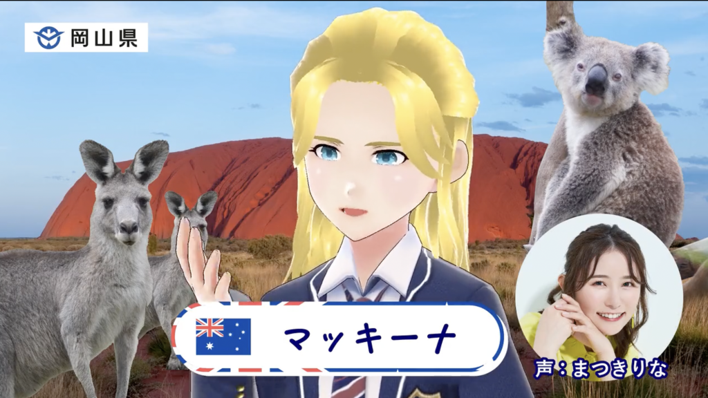 まつきりなは、留学生VTuber「マッキーナ」の声で出演しました。
